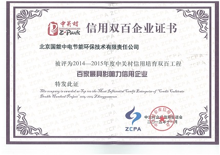 當(dāng)前位置: 國(guó)能中電公司動(dòng)態(tài)> 我公司被評(píng)為2014-2015年度中關(guān)村信用培育雙百工程“百家最具影響力信用企業(yè)”