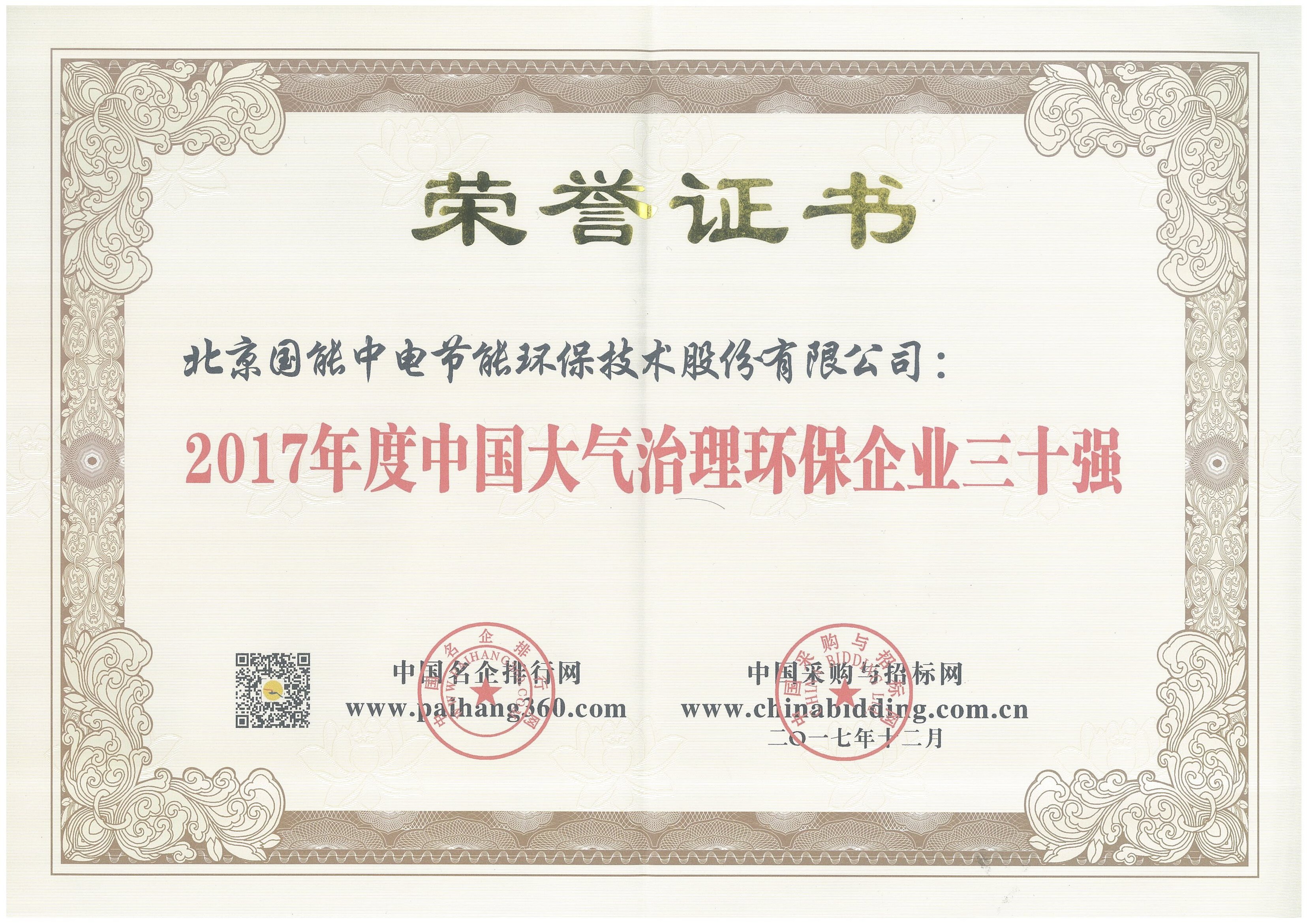 新年伊始,北京國能中電節能環保技術股份有限公司喜報頻傳,在采購與招標網舉辦的“2017年中國大氣治理招標采購綜合評價活動”中榮獲五項大獎: