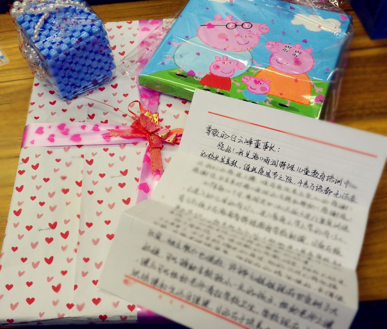 寫信的人是海口雨潤特殊兒童教育培訓(xùn)中心校長吳美林,禮物則是由學校的自閉癥兒童及智力發(fā)育遲緩兒童親手制作,一同寄過來的還有一沓厚厚的照片,那是學校孩子們接受教育和康復(fù)訓(xùn)練的活動掠影。