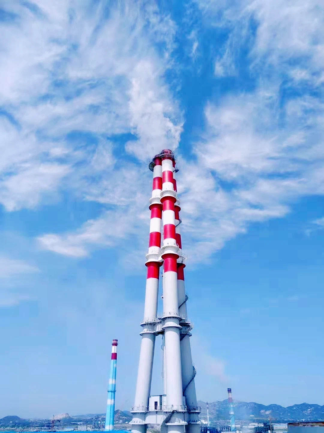 除利用多項國內外先進技術、先進新材料外,電廠設立的三管自立式鋼煙囪,內壁貼襯鈦板,有效降低了造價和電廠煙囪防腐的成本,是世界范圍內第一根內壁貼襯鈦板的鋼管式煙囪。對今后我國工業項目區建設、降低成本具有驗證性示范意義。